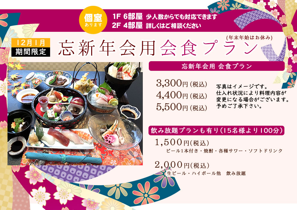 忘新年会用 会食プラン案内