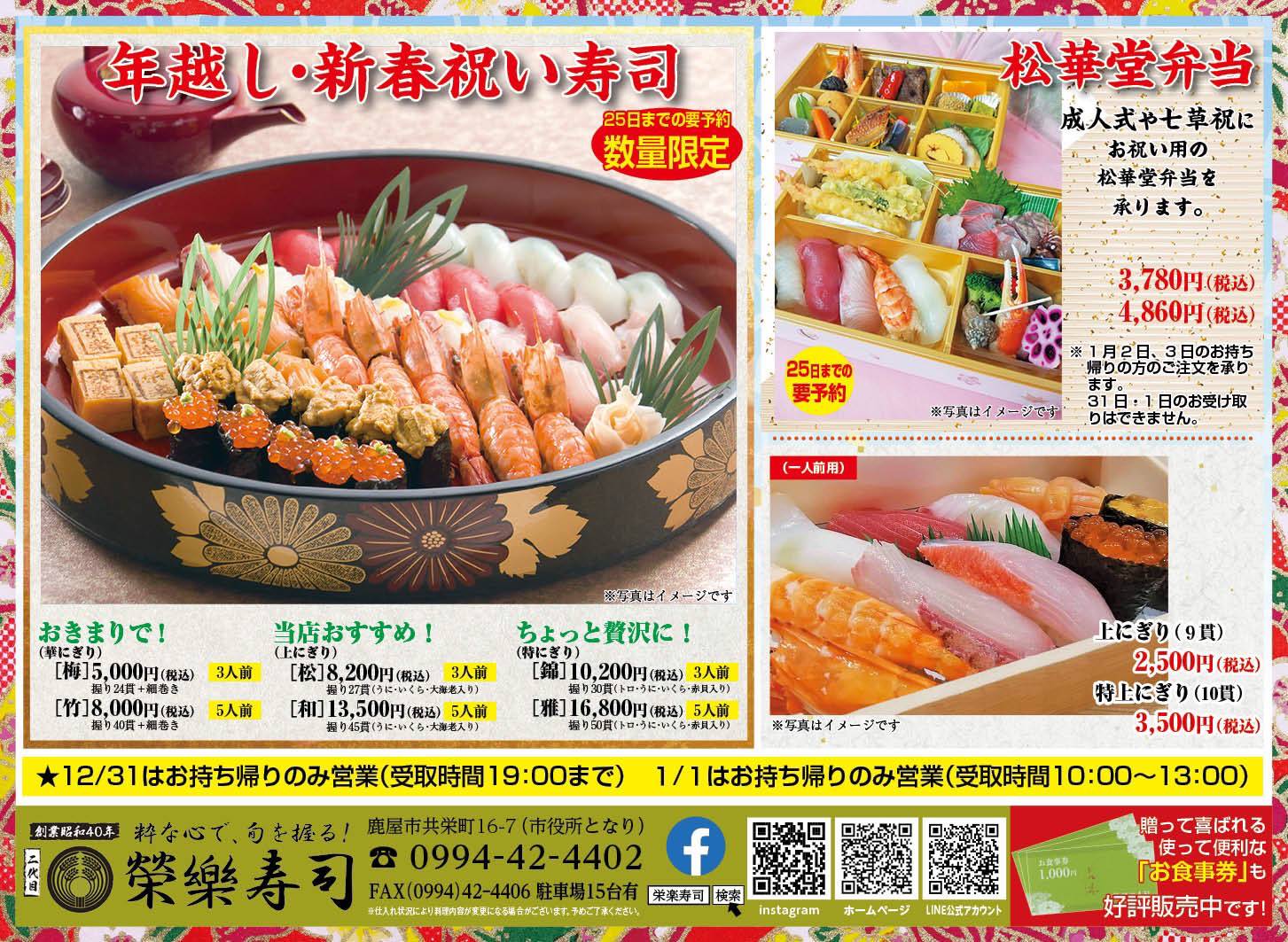 鹿屋の寿司屋イベント情報~2022-2023 年越し、新春祝い寿司