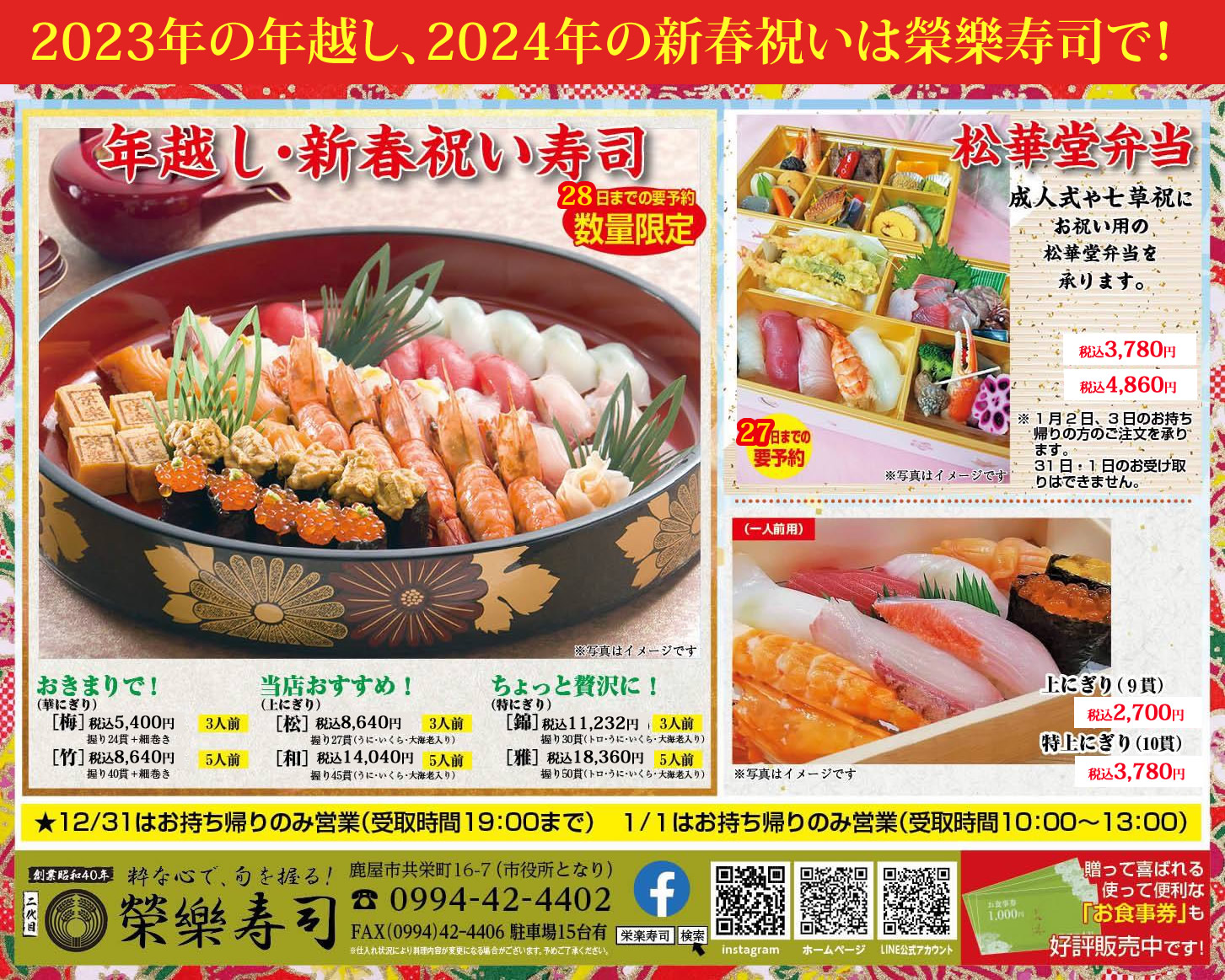 鹿屋の寿司屋イベント情報~2023-2024 年越し、新春祝い寿司